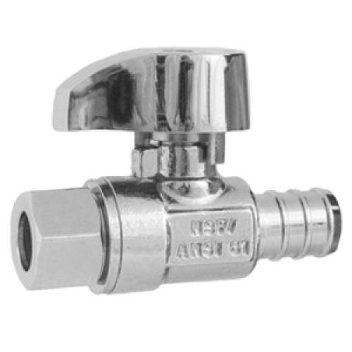 Matco-Norca™ Angle Supply Valve, Straight, 1/2 x 3/8 Inch Nominal, PEX x Compression End Style, 125 psi Pressure, Chrome-Plated Lead Free Brass Body, NBR O-Ring, PTFE Packing Softgoods, 32 - 160 deg F, Dimensions: 2.3 Inch L
