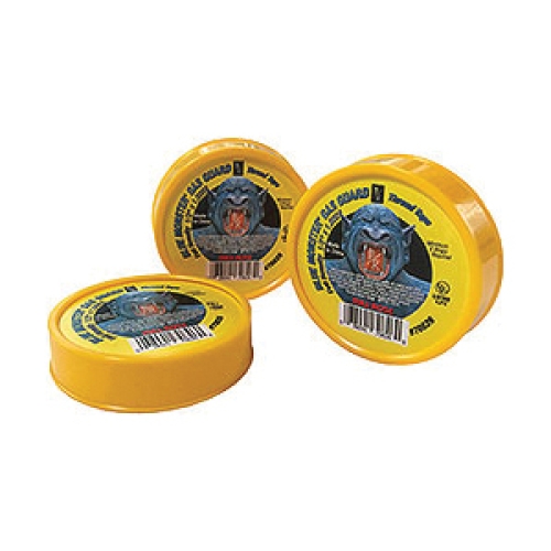 Blue Monster® Gas Guard™ PTFE thread sealing tape is designed specifically for gas lines. This is a full or maximum-density thread sealing tape. Blue Monster® Gas Guard™ tape is approved by relevant authorities and used by the gas industry world wide. It's color coded yellow so fitters and inspectors can easily recognize it as an approved tape. Ideally suited for natural gas, propane and butane lines. Use on threads of approved gas piping systems. Use on pipe made from galvanized steel, iron, brass, copper, aluminum, stainless steel, polyethylene, polypropylene, PVC, CPVC, ABS and fiberglass. Do not use Blue Monster® Gas Guard™ thread seal tape on oxygen systems.