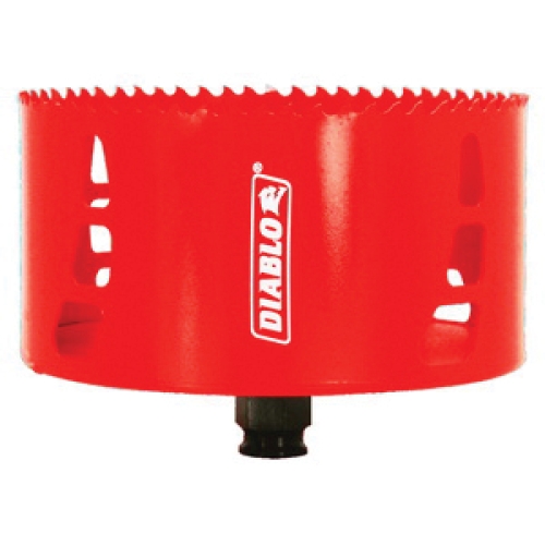 DIABLO® Hole Saw, 5 Inch Dia, 2-3/8 Inch Cutting Depth, 4, 3/8 Inch Arbor, 2-3/8 Inch Overall Length, Bi-Metal Cutting Edge, Variable Pitch Tooth, 3/8 Inch Chuck, 3/8 Inch Shank, Applicable Materials: Clean Wood, Hardwood, Plastic, Softwood, Steel