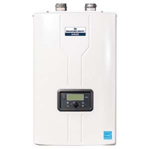 Bradford White® Tankless Gas Water Heater with Built-In Recirculation, Series: GR Series, 199000 Btu/hr Heating, Propane Gas, 3/4 Inch NPT Gas Connection, 2 gal Tank, Automatic Flame Ignition, 2.8 to 9.7 gpm Flow Rate, Wall Mounting, 3/4 Inch NPT Water Connection, 95 to 185 deg F, Cold Rolled Carbon Steel Case, Stainless Steel Heat Exchanger, Dimensions: 27.6 Inch H x 17.3 Inch W x 14.9 Inch D, Includes: Gasket Kit, Warranty: 15 Year Residential Heat Exchanger, 5 Year Parts
