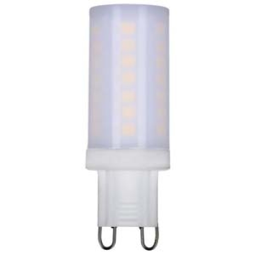 NUVO® by SATCO Commercial-Grade LED Lamp, Dimmable, 5W/LED/G9/830/FR/DIM Designation, 5 W Wattage, 120 V, LED Bulb, G9 Double Loop Base, T4 Shape, 500 Lumens, 25000 hr Average Life, White, 80+ CRI, 3000 K Color Temperature, Frosted Lamp, Omni-Directional Beam, 300 deg Beam, Dimensions: 0.75 Inch Dia x 2.13 Inch L, Warranty: 5 Year